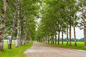 帯広市の都内、音更町(おとふけちょう)にある公営牧場です。白樺並木が有名で、北海道を舞台にしたNHK朝の連続テレビ小説「マッサン」のロケでも使われました。牧場奥には展望台があり、広い牧草地に牛や馬がのんびりと草を食む様子や、自然の景色を楽しむことができます。