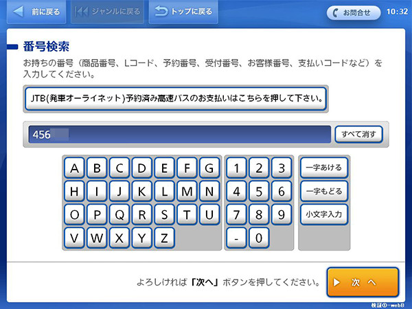 - Loppi端末の画面をタッチして、「各種番号をお持ちの方」を選択します。