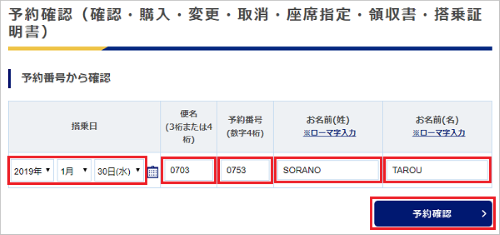 予約番号で確認する場合は搭乗日や予約便名(3桁または4桁の番号)の入力も必要なので、準備しておいたほうがいいでしょう。